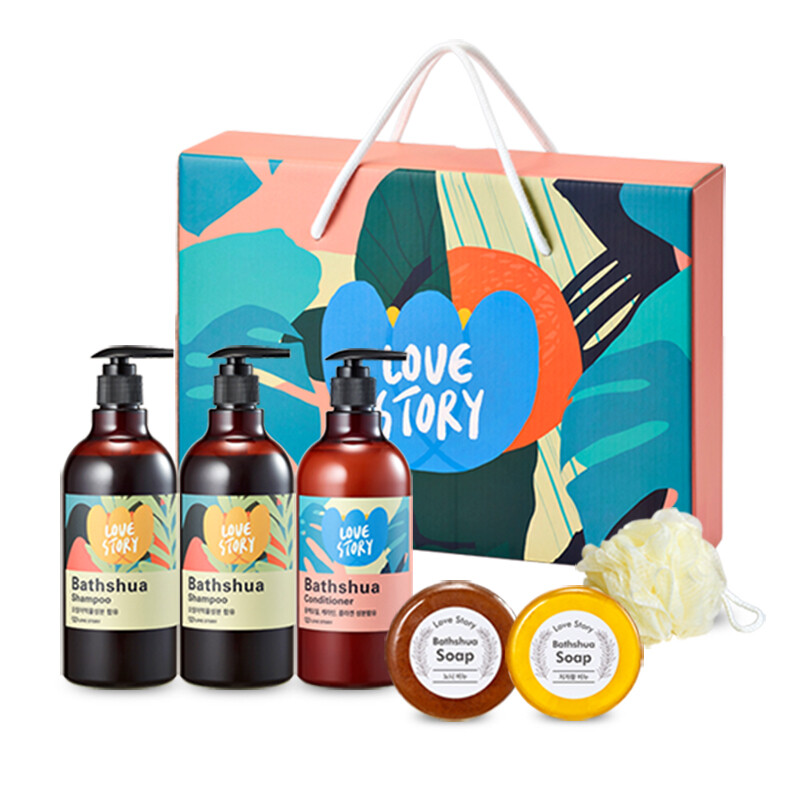 샴푸 500ml 2개 + 컨디셔너 500ml 1개 + 세안비누 2개 + 샤워볼 1개